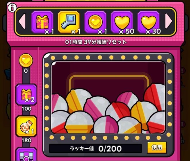 ガチャを回すと「ハート」が手に入り、これを使って報酬と交換することができます。