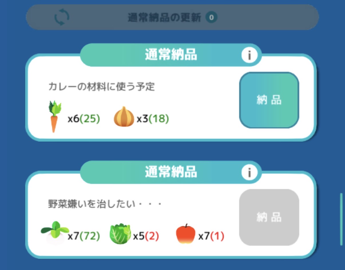 そのため、イベント中でも通常納品をこなしつつ、イベント作物の種をしっかり集めていくことが大切です。