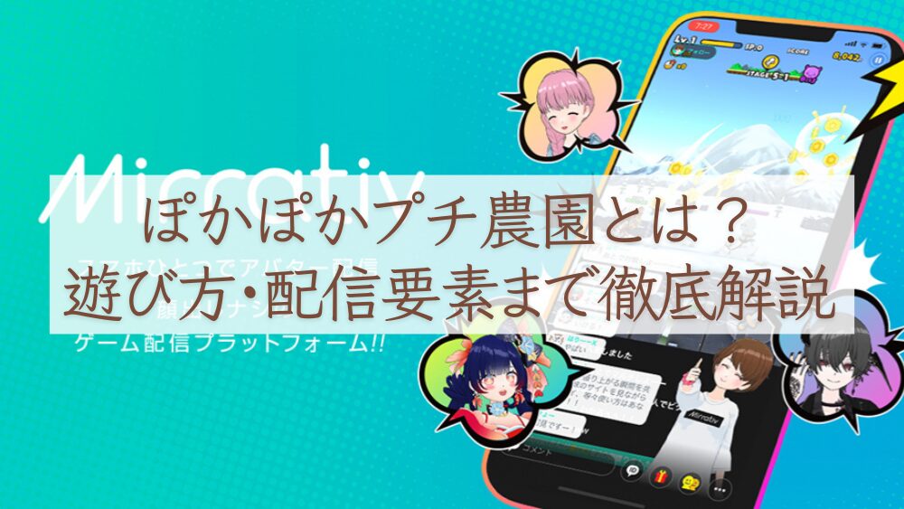 ミラティブのぽかぽかプチ農園は、農園育成・放置プレイ・定期イベント・配信連動が楽しめるライブゲームです。