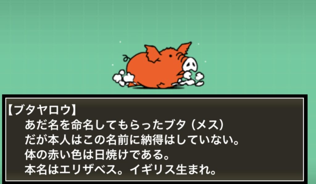 見た目はブタですが、攻撃力が高く、序盤のにゃんこたちをあっという間に蹴散らします。