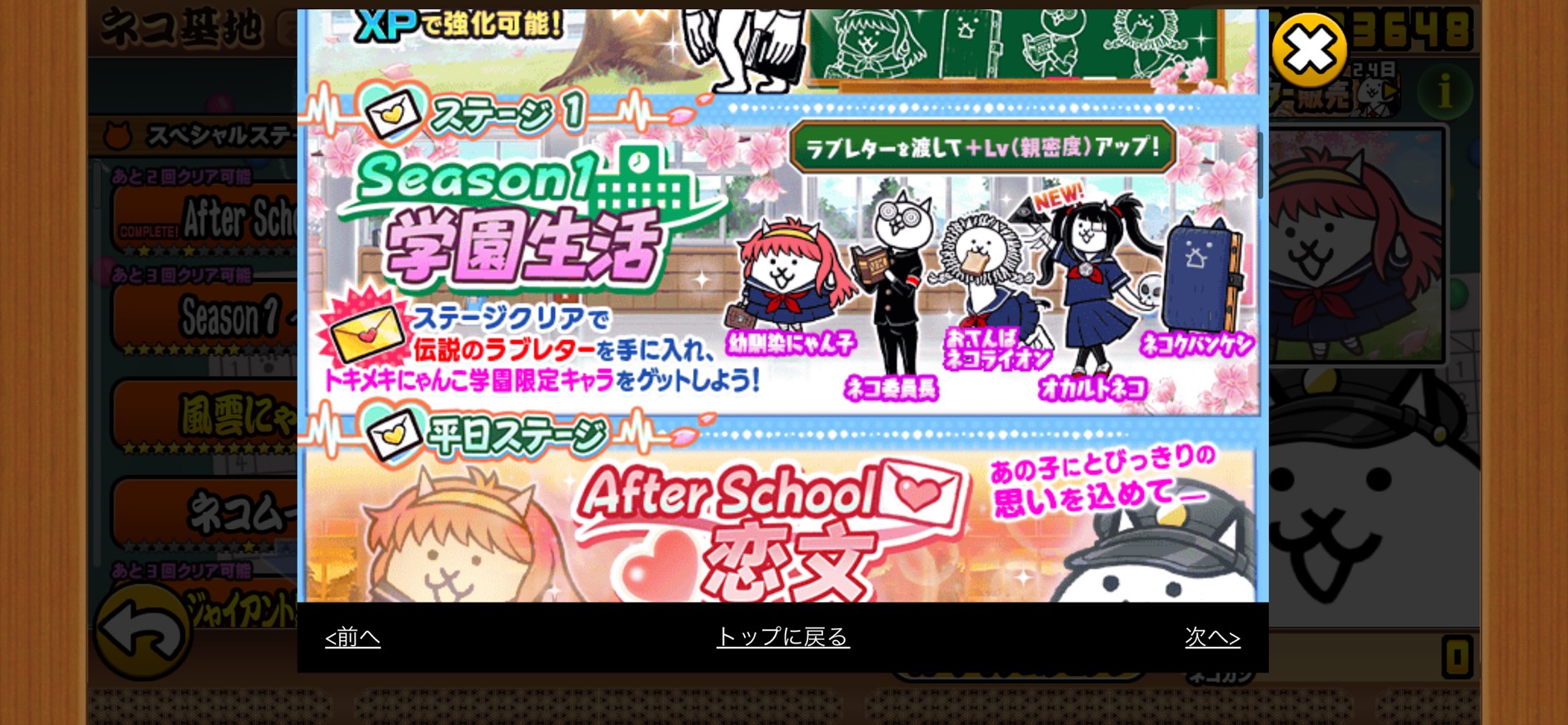 「トキメキにゃんこ学園」イベントでは、限定キャラの入手や強化のために伝説のラブレターを集める周回が重要になります。