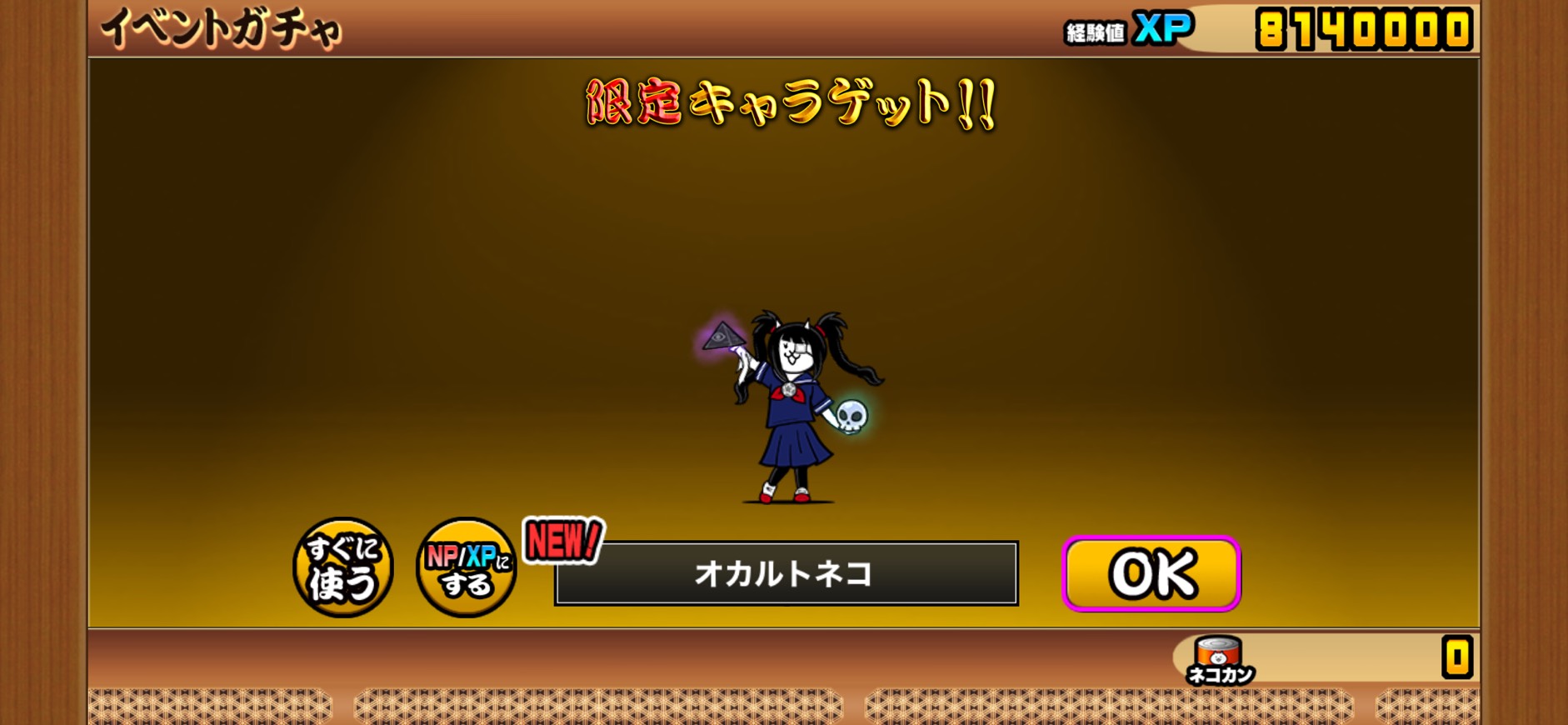 2026年イベントで追加された新キャラ「オカルトネコ」は、今回のガチャの目玉キャラです。