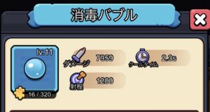 消毒バブルは、発射したバブルがピンポン玉のように跳ね返りながら攻撃する武器です。