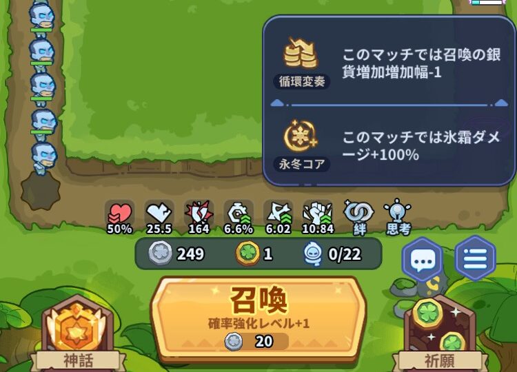 バフ・デバフや神話ヒーロー選択、ダンジョン攻略など運と戦略の両方が重要です。