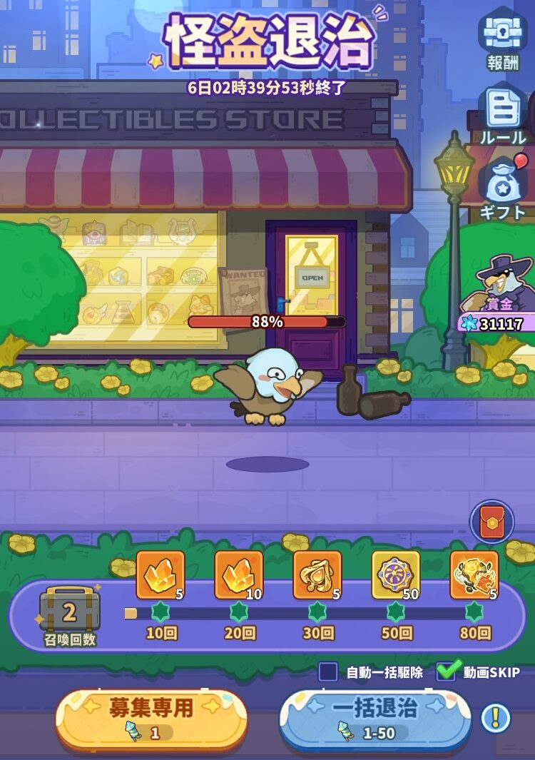 - 退治回数は毎日リセット