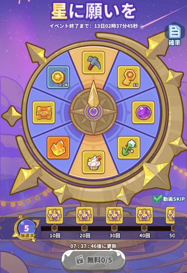 - 星に願いをは5回回して終了でOK